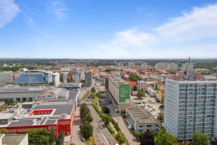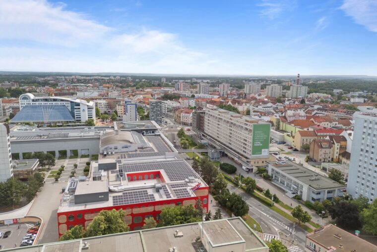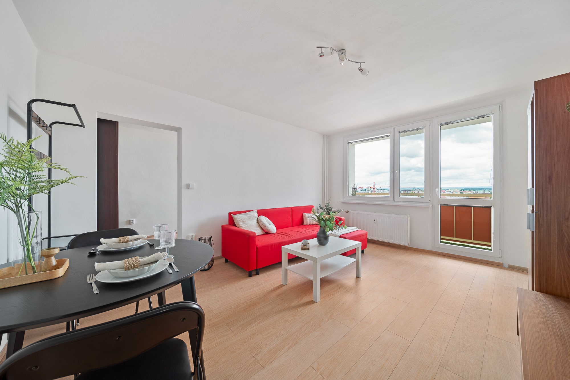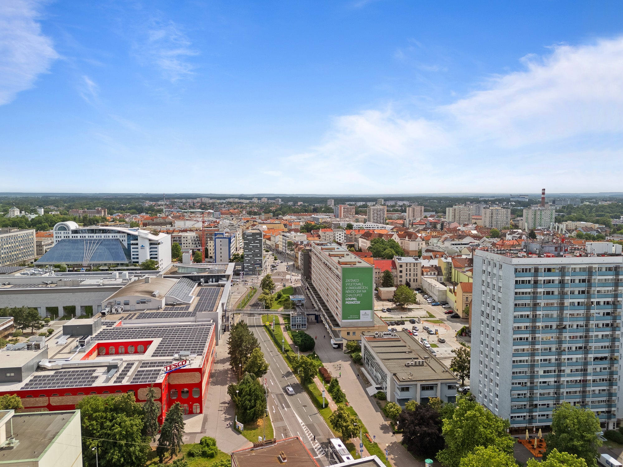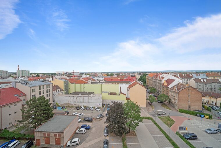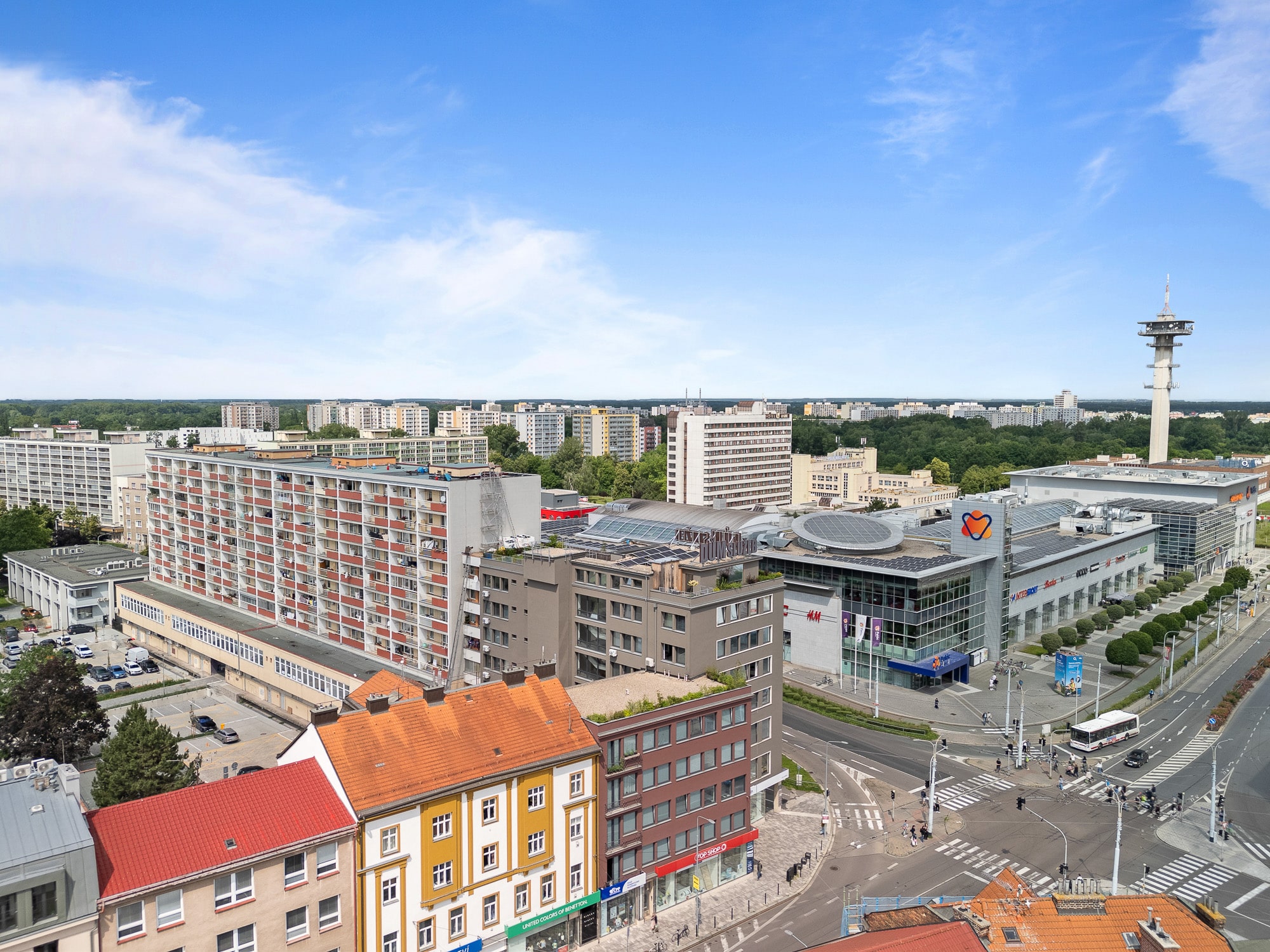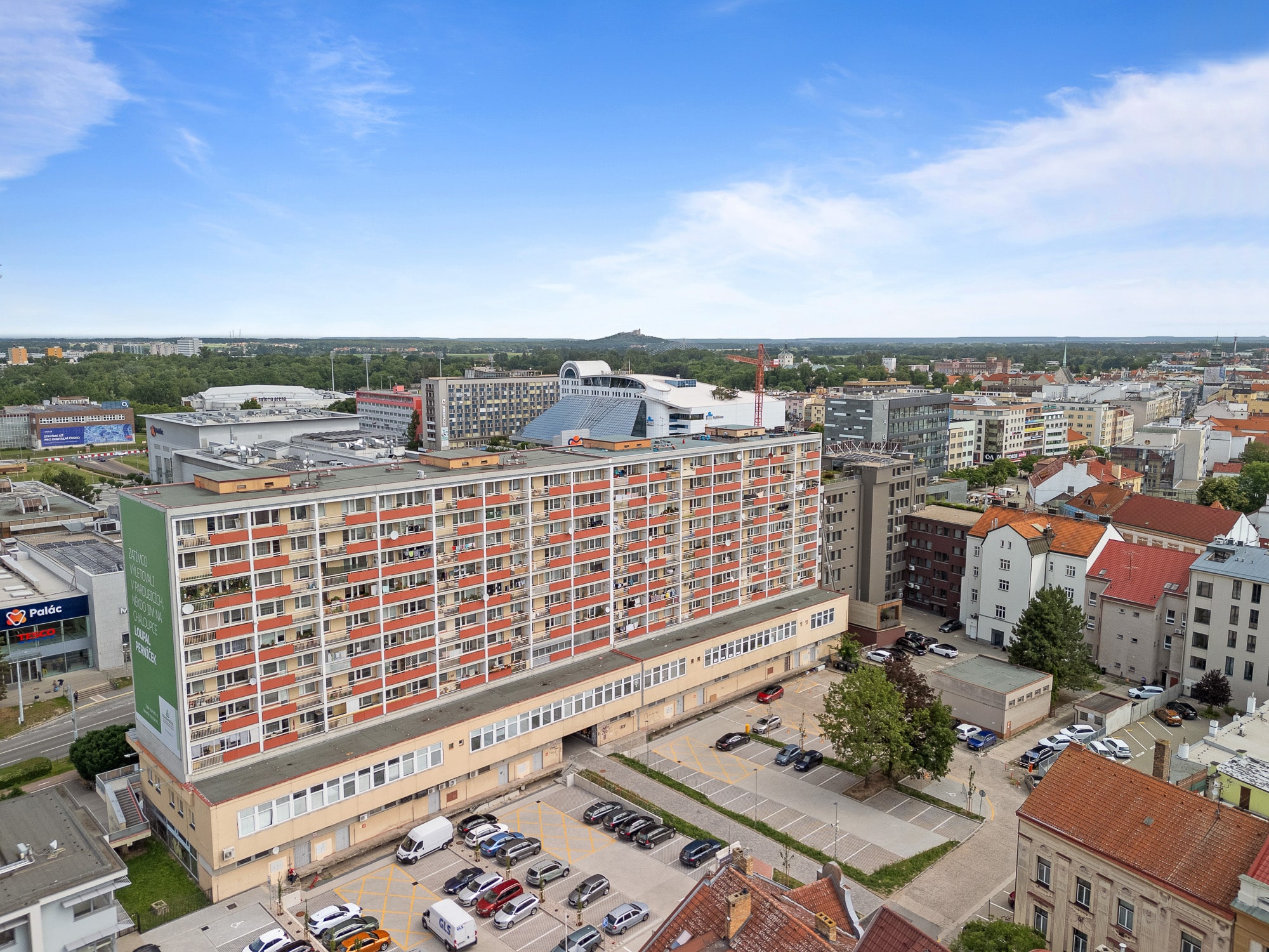 Byt se nachází v 8. nadzemním podlaží panelového domu se dvěma výtahy, v bezprostřední blízkosti OC AFI Palác Pardubice a tedy i centra města. Pěšky jste za pár minut nadchodem ve zmíněném obchodním centru nebo za pár minut na Třídě Míru či na vlakovém a autobusovém nádraží. Zde prakticky nepotřebujete automobil, vše je na dosah pěšky!
