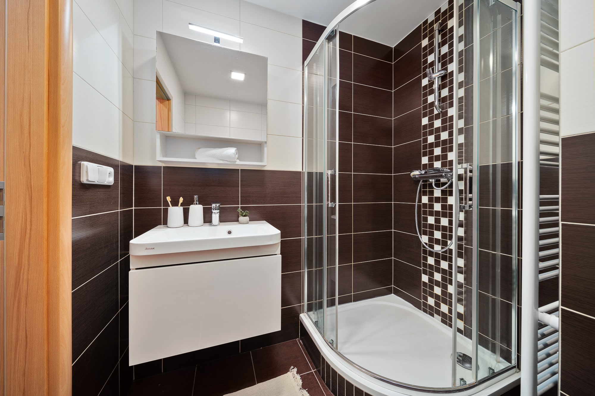 • koupelna se sprchovým koutem, WC a prostorem pro pračku