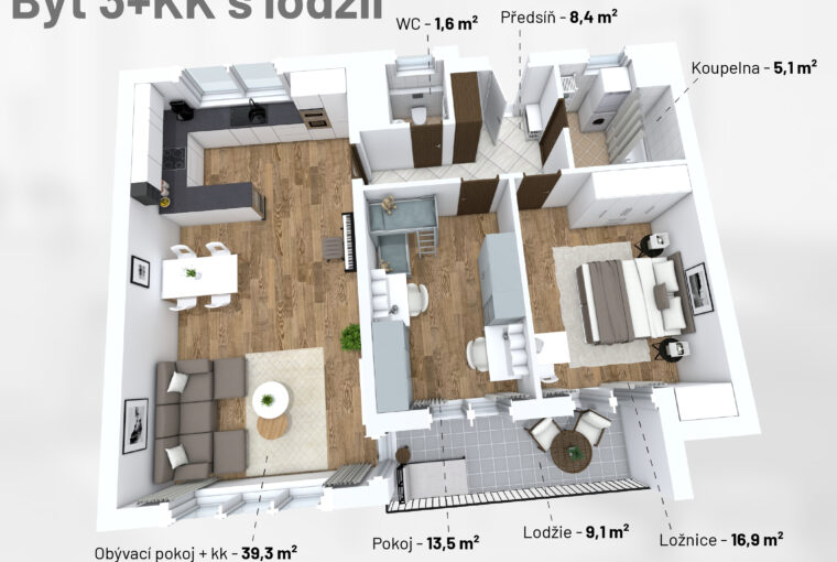 Nabízíme k prodeji krásný a prostorný byt o dispozici 3+kk s celkovou užitnou plochou 104 m² (byt 84,8 m² + lodžie 9,1 m² + sklep 10,4 m²) v moderním rezidenčním domě z roku 2016, který realizoval renomovaný developer Central Group. Součástí prodeje je také garážové stání přímo v domě.