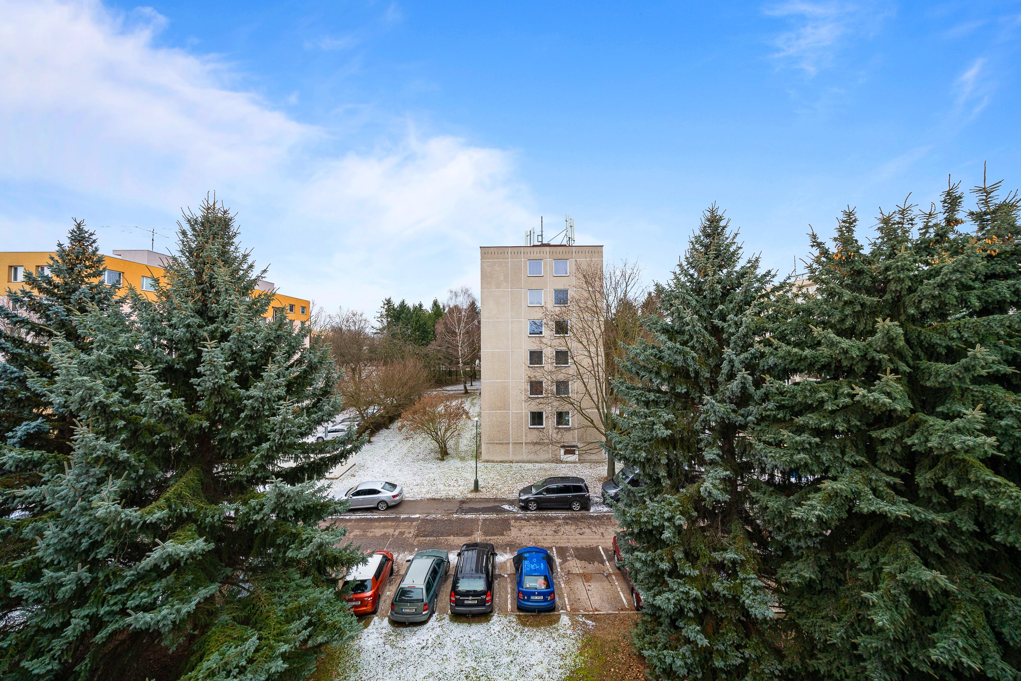 Parkovat je možné přímo před domem a zdarma.
