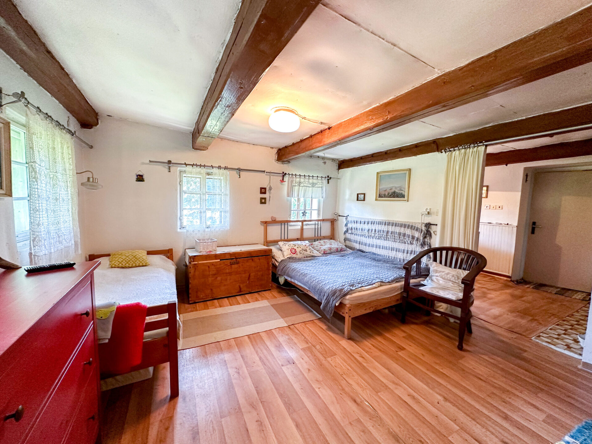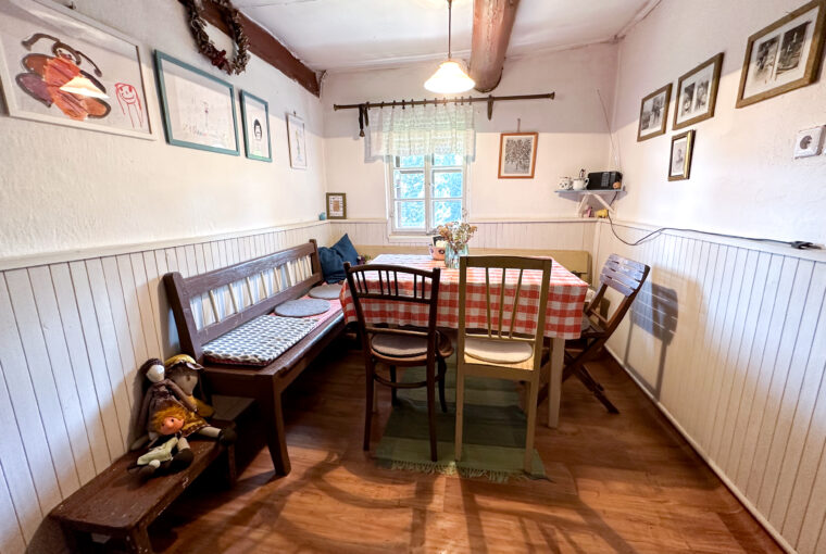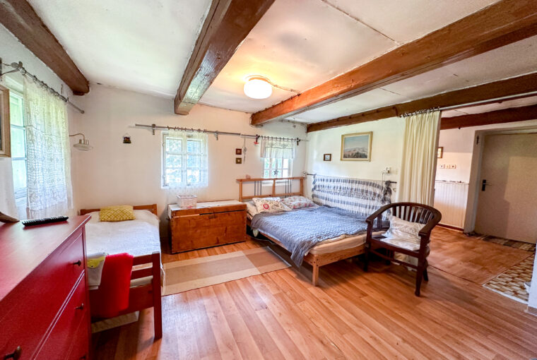 Zastavěná plocha chalupy je 95 m2 s navazující stodolou 59 m2.