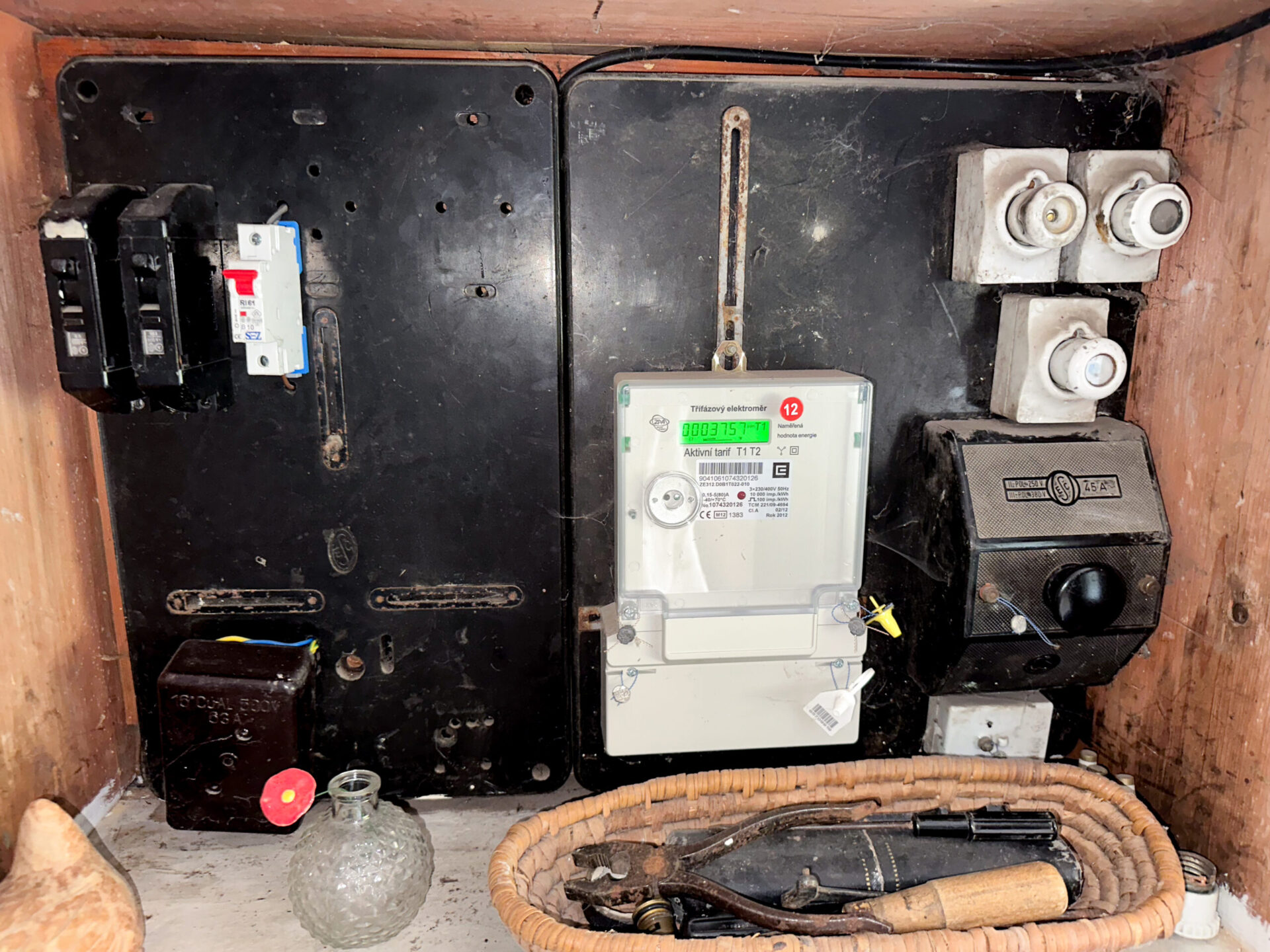 Do domu je přiveden veřejný vodovod, elektřina a vytápí se kamny.