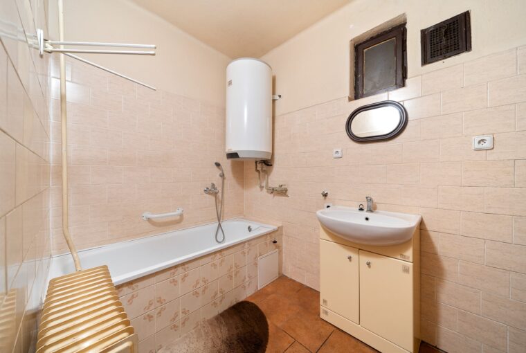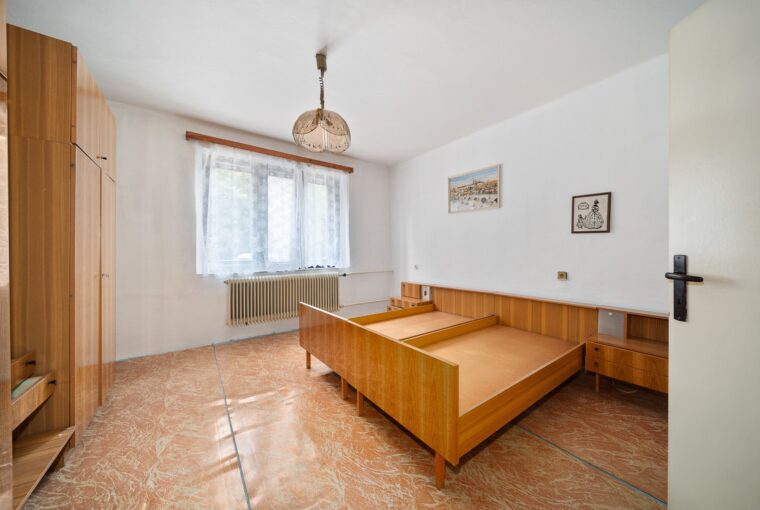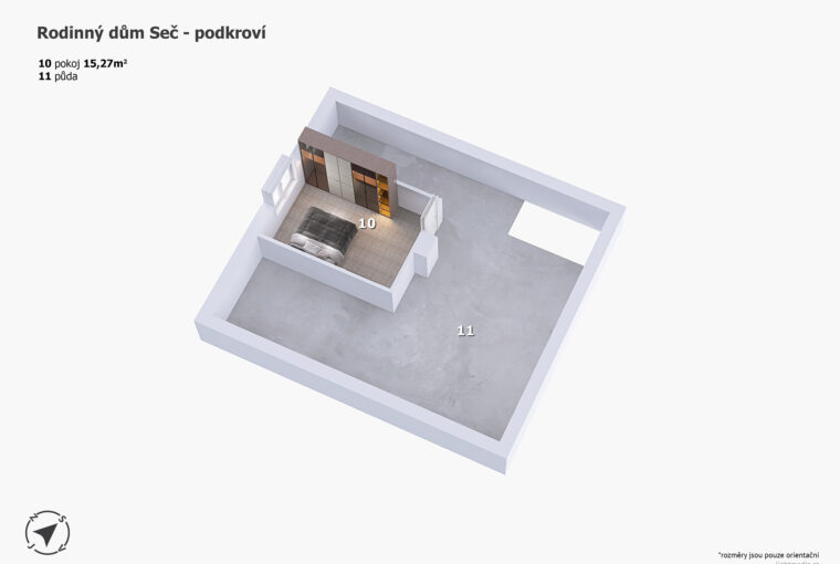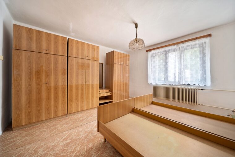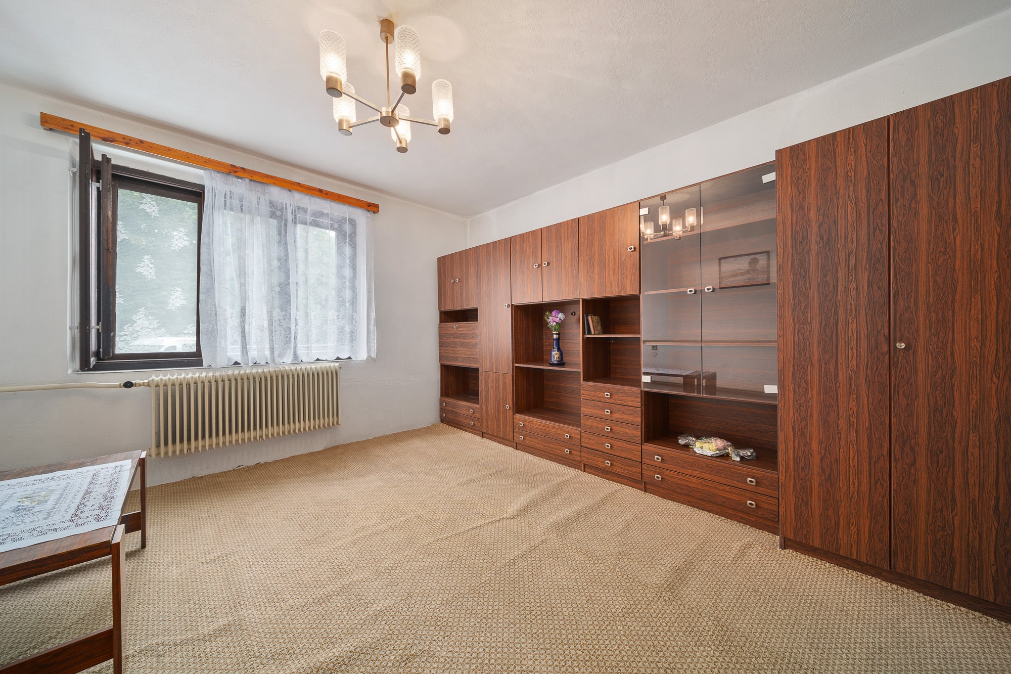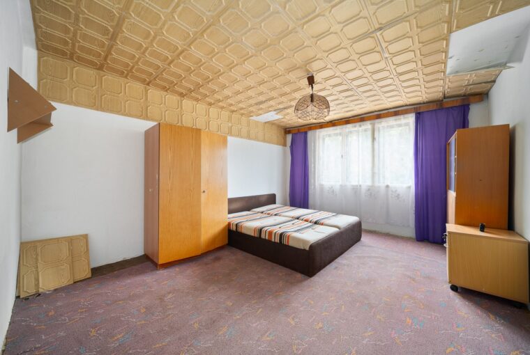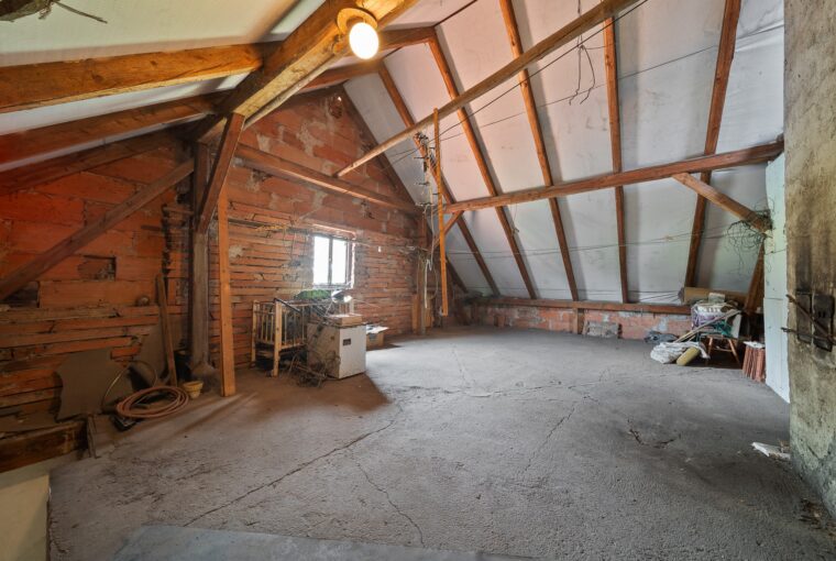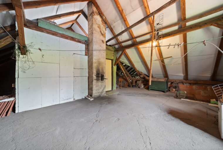 V horním patře (2. NP) je k dispozici prostorný půdní prostor s jedním pokojem, vhodný k vestavbě dalších obytných místností.